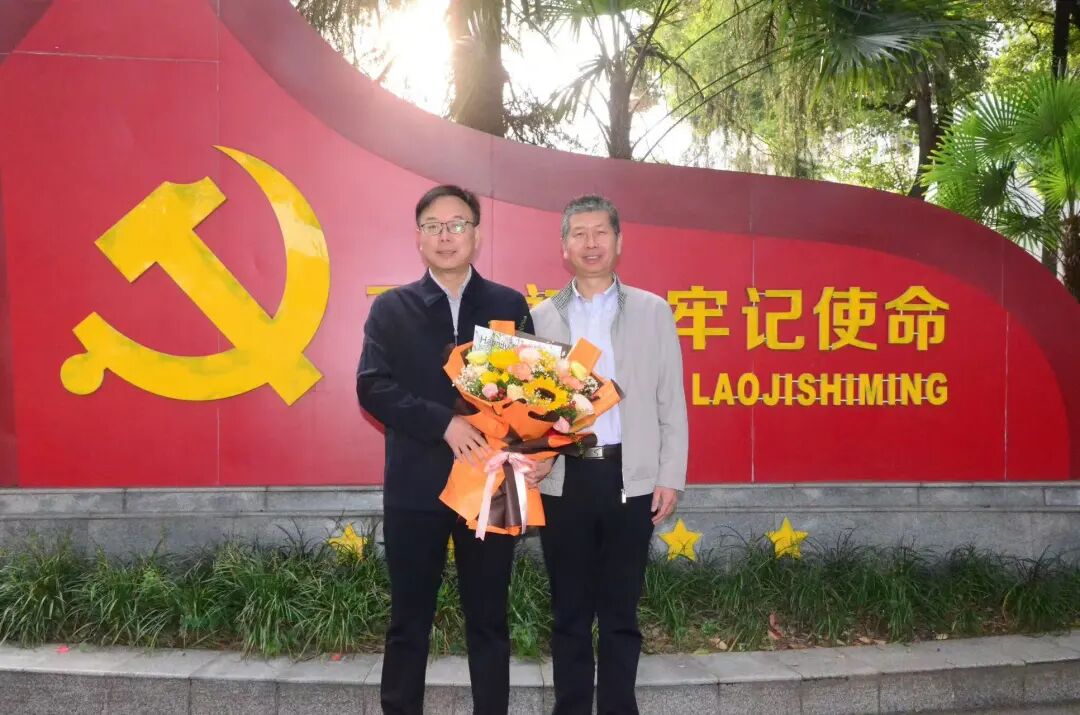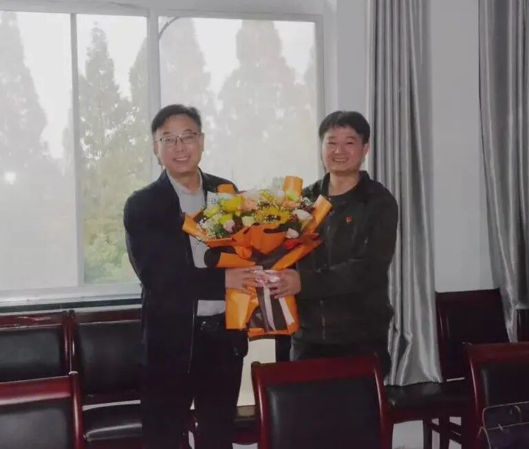 支部书记黄斌向李传鼎同志赠送鲜花祝福