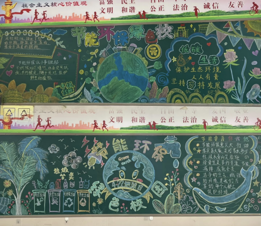组织多维宣传,营造浓厚节能氛围。6月23日至29日节能宣传周期间,谷城县构建“机关 + 校园”双轮驱动的宣传矩阵。行政机关张贴节能海报、循环播放 LED 视频等方式,普及节能知识;学校组织黑板报、手抄报展览,开设“节能小课堂”、开展巧手“焕新”废旧纸张等活动,将节能理念延伸至校园。