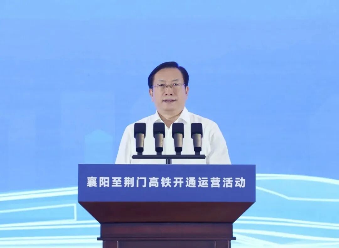 王忠林代表湖北省委、省政府,对襄荆高铁开通运营表示热烈祝贺,对国铁集团长期以来给予湖北的关心支持以及各参建单位和广大建设者的辛勤付出表示衷心感谢。他说,襄荆高铁正式开通运营,既是坚定贯彻习近平总书记关于交通强国重要论述、着力打造新时代“九州通衢”的关键之举,也是推动汉襄宜“金三角”协同发展、加快建成中部地区崛起重要战略支点的有力支撑,在湖北铁路建设史、经济社会发展史上具有标志性意义。襄荆高铁的开通运营,标志着我省首个高铁环线正式形成。宜城、钟祥2个县级市顺利进入“高铁时代”,襄阳至荆门实现“半小时快速通达”,高铁环线联结武汉、襄阳、荆门、荆州等8个市州,极大方便沿线群众生产生活。襄荆高铁的开通运营,将促进汉襄宜“1小时高铁圈”加快形成。随着襄荆高铁的开通和后续沿江高铁武汉至宜昌段建成,将形成汉襄宜“1小时高铁圈”,我省“一主两副”中心城市之间将更好地实现产业互融、要素互济、优势互补,为以武汉都市圈为中心推进长江中游城市群联动发展注入强劲动能。襄荆高铁的开通运营,将进一步推动我省高铁建设跨越式发展。“十四五”以来,我省高铁建设每年开工2条、开通2条,预计今年底时速350公里高铁通行里程将跃居全国第5位,“轨道上的湖北”加快构建、交通强省建设迈出坚实步伐。