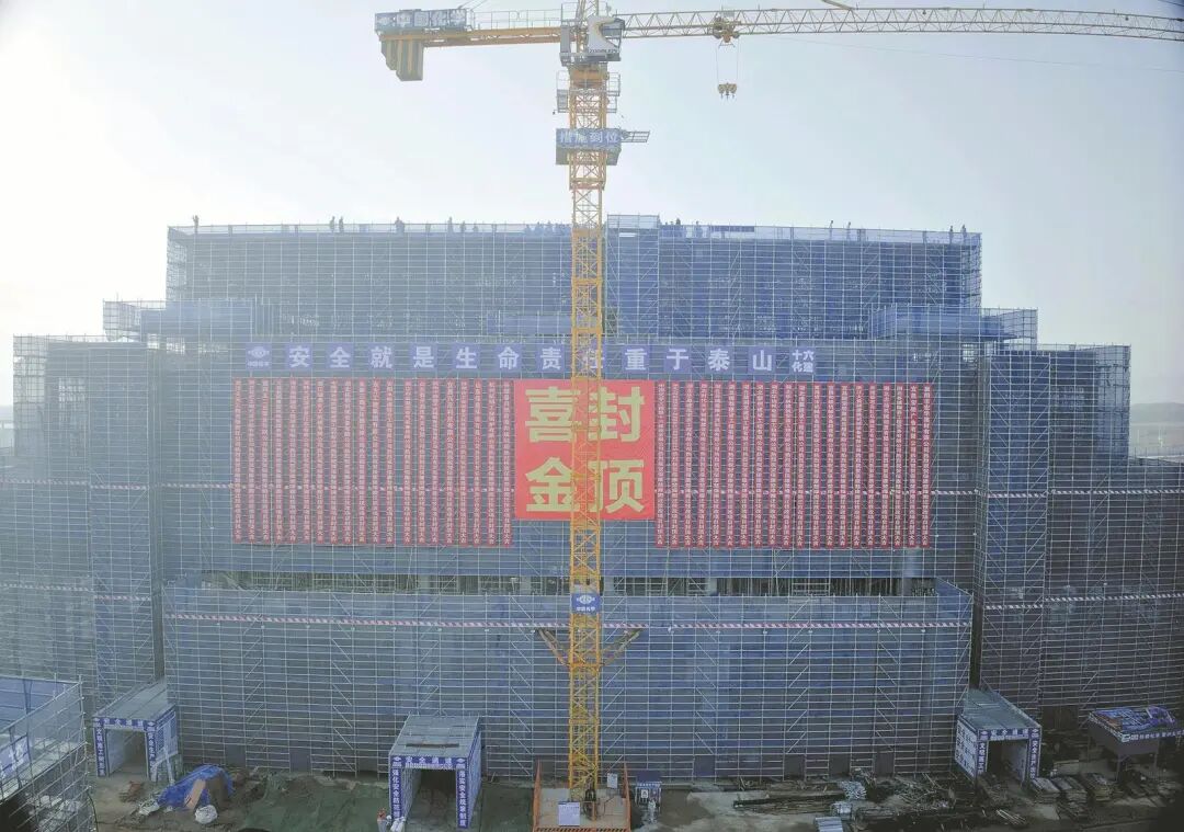 12月25日,兴发保谷磷化工产业园保康楚烽搬迁技改项目黄磷电炉主装置封顶。陈泉霖 肖婕 乐建鹏 摄