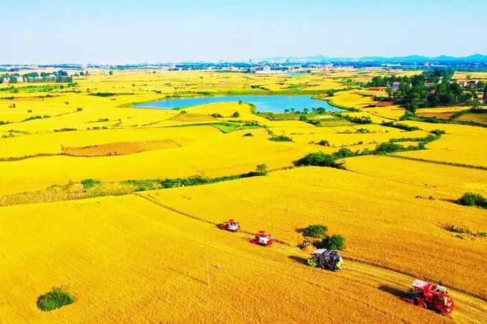 襄阳是湖北省最大的小麦主产区。每年夏收期间,金色麦浪美如画。