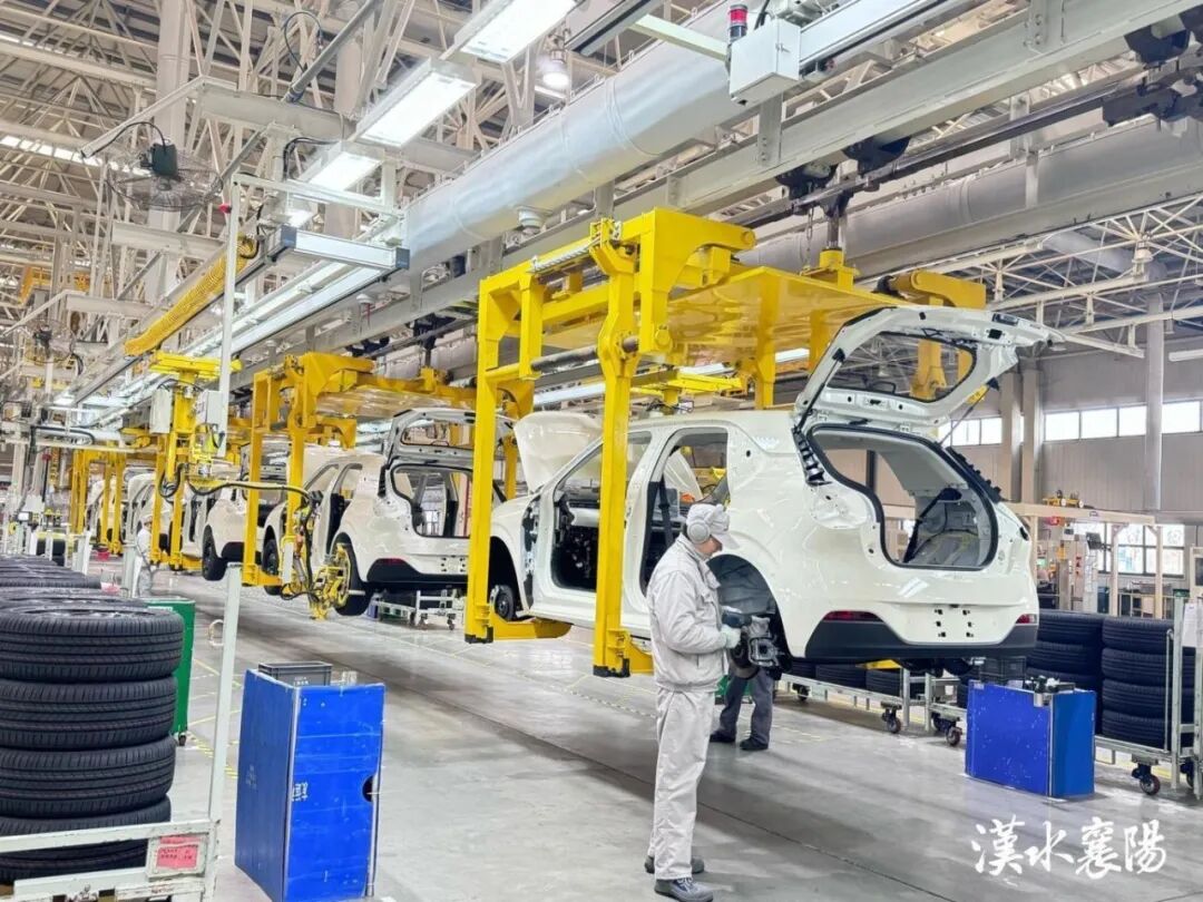 一辆辆东风奕派纳米01在现代化的生产线上逐步组装成型、下线。