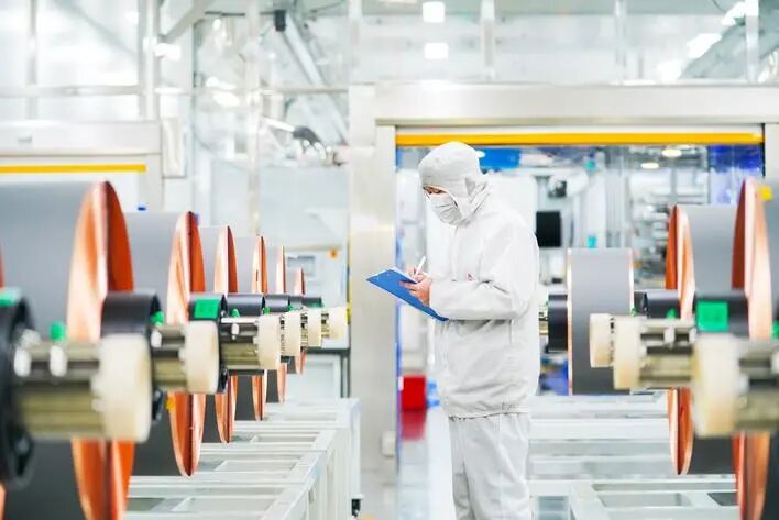 襄阳高新区骆驼新能源低碳产业园生产车间,工人正在检查生产记录。