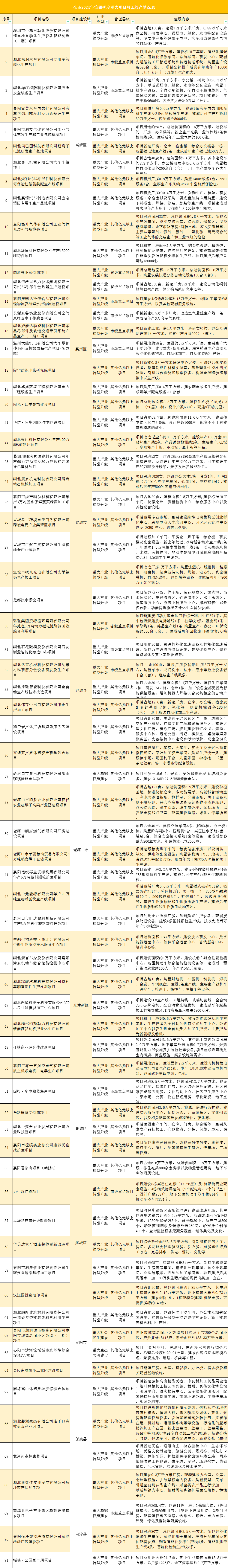 2024年第四季度,全市累计竣工或部分投产重大项目71个,总投资212亿元。 按所在区域分:高新区11个,襄州区10个,宜城市8个,谷城县7个,老河口市7个,东津新区7个,襄城区5个,樊城区5个,枣阳市4个,保康县4个,南漳县3个。 按管理层级分:省级重点项目3个,占竣工投产项目总数4.2%;市级重点项目12个,占竣工投产项目总数16.9%;其他重大项目56个,占竣工投产项目总数78.9%。 按行业类型分:重大产业转型升级类项目67个,占竣工投产项目总数94.4%;重大基础设施建设类项目2个,占竣工投产项目总数2.8%;重大社会民生建设类项目1个,占竣工投产项目总数1.4%;重大生态文明建设类项目1个,占竣工投产项目总数1.4%。