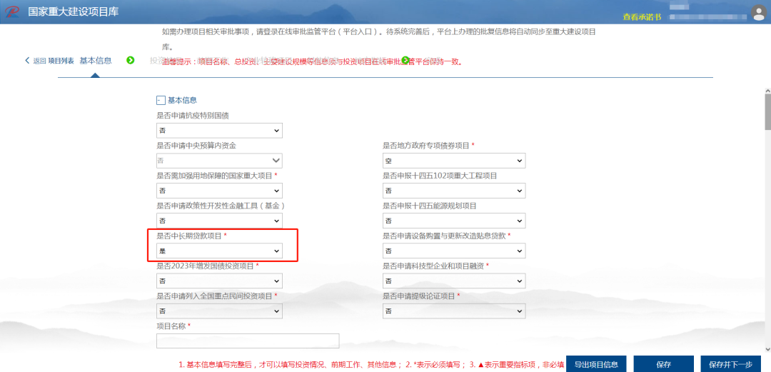 3、在上述界面中,除“是否中长期贷款项目”选“是”,其他均选“否”。 4、其他按照界面要求如实填写。 5、遇到其他问题请及时咨询属地发改部门或者直接咨询市发改委,我们将一如既往为企业做好服务保障。 五、政策咨询 襄阳市发改委?财金贸易和服务业发展科 0710-3528763??0710-3532881
